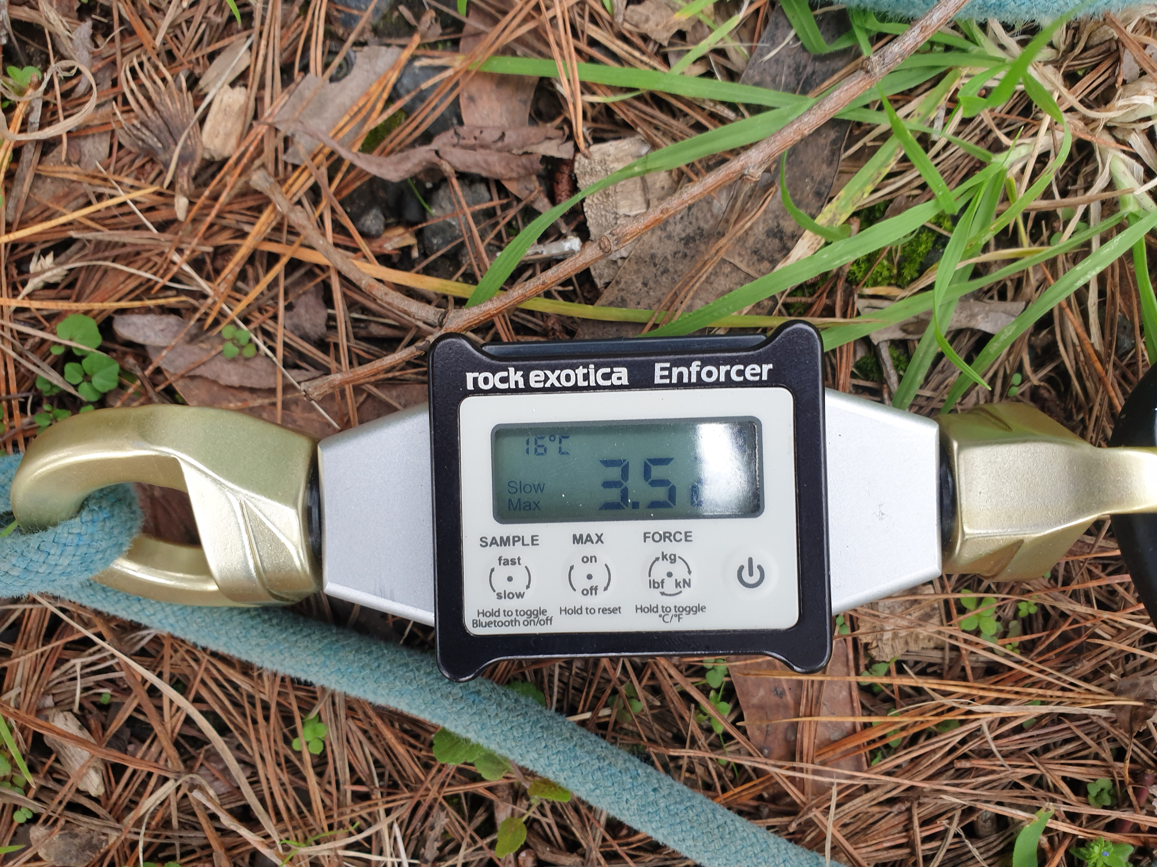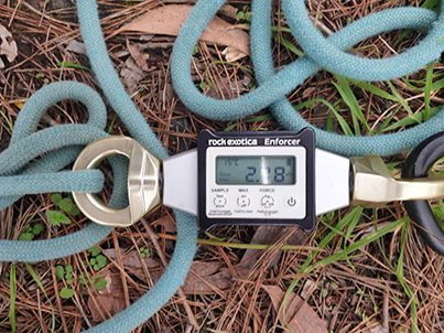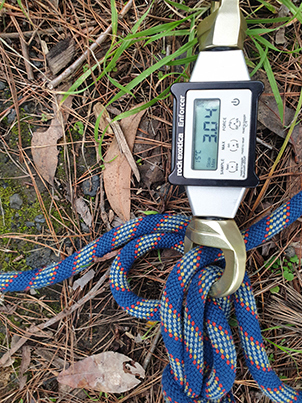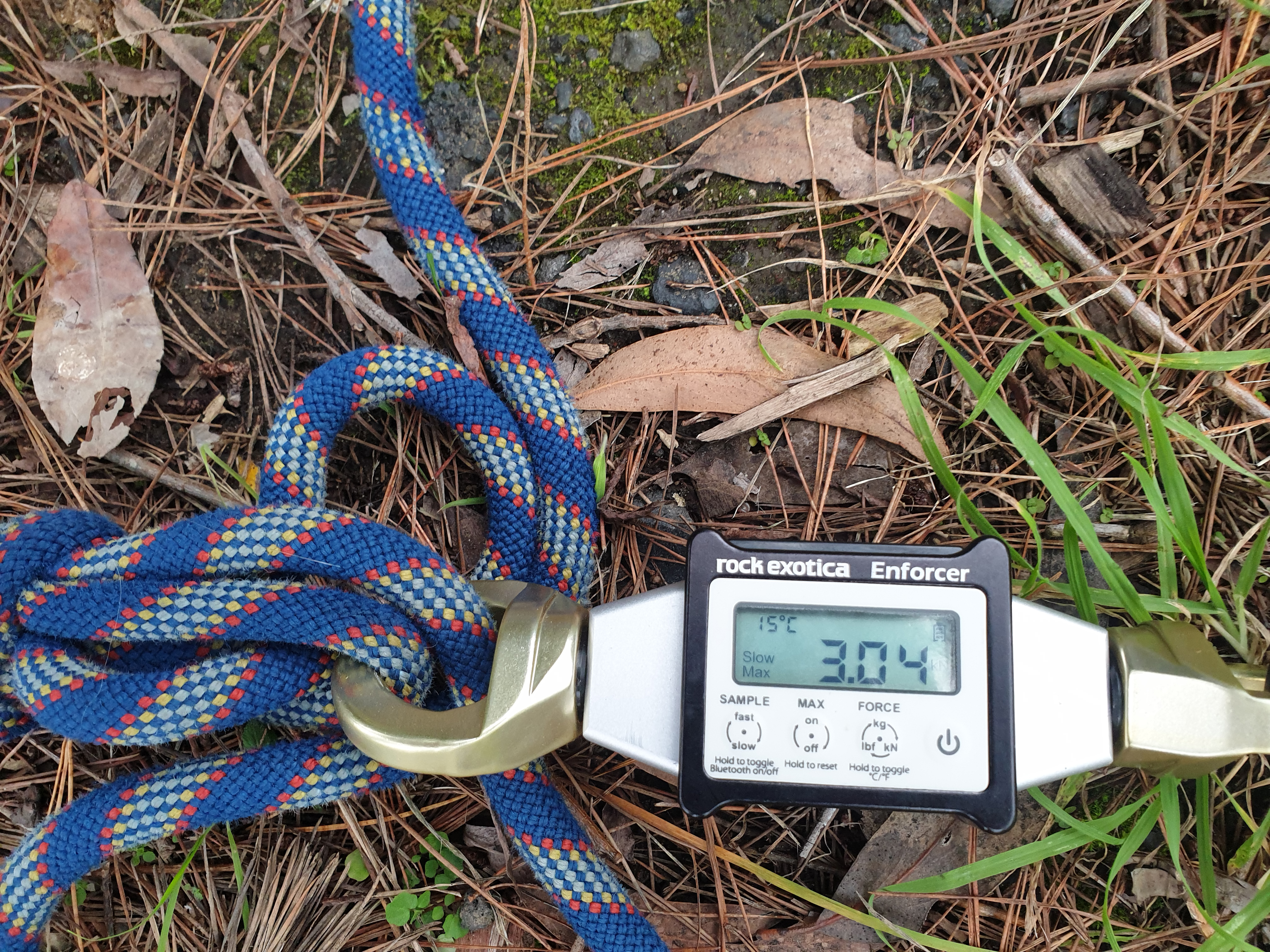 - The other end of the load cell was attached to one of the ropes being tested using a bowline;